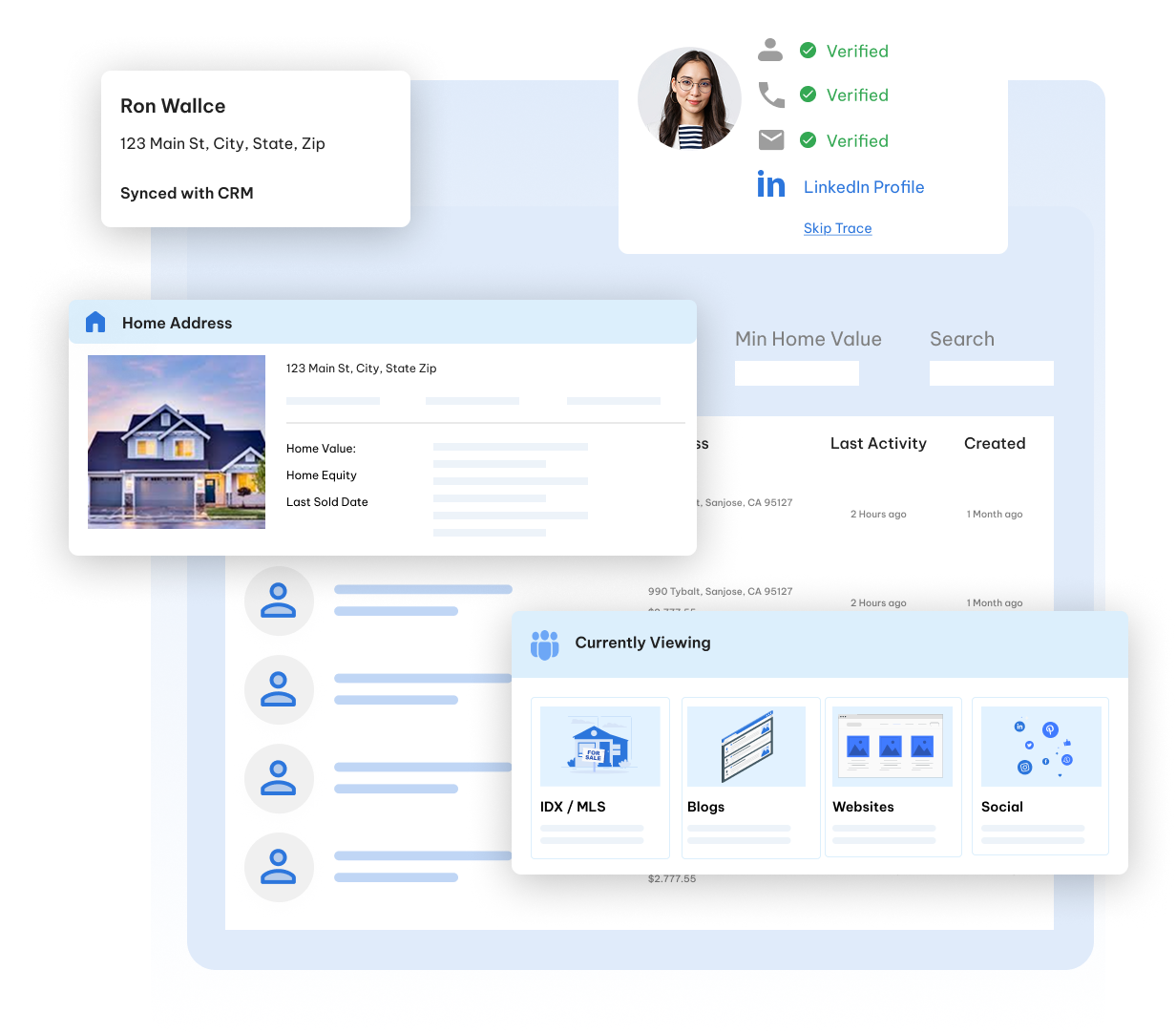 Capture anonymous visitors using skip-trace and owner-match technology—layered with real estate data such as address, home value, verified name, phone number, and email.